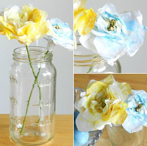 As flores de sua festa podem ser feitas por você. E estas flores podem ficar nas mesas dos convidados, em vasinhos também feitos por você, nas mesas dos doces, nas paredes, no teto ou nos painéis. A entrada da sua festa também pode receber diversas peças artesanais feitas por você, para economizar ainda mais em seu orçamento.
