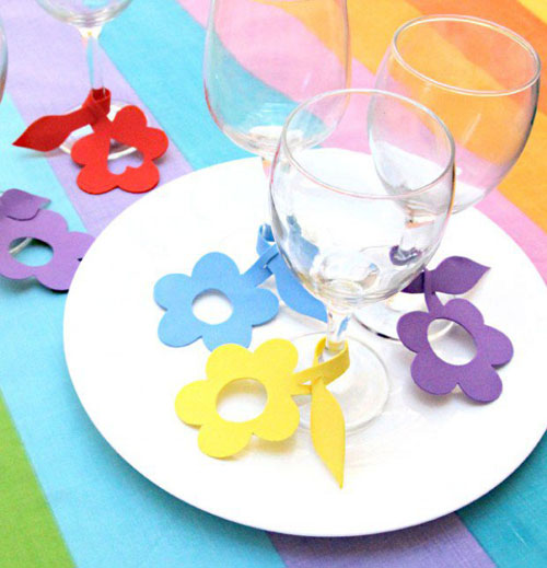 Entre as 23 ideias de artesanatos para festas de aniversário que trouxemos hoje há os artesanatos em EVA para festa de aniversário, como os enfeites para base de taças, que podem ser usados em todas as taças dos convidados ou apenas nas taças da mesa de alimentos.