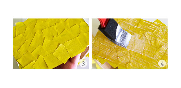 Em seguida, aplique novamente cola Mod Podge sobre os papeis colados.