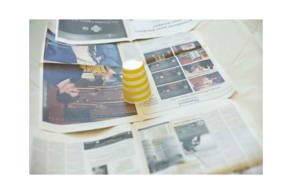 Forre sua mesa com jornal.