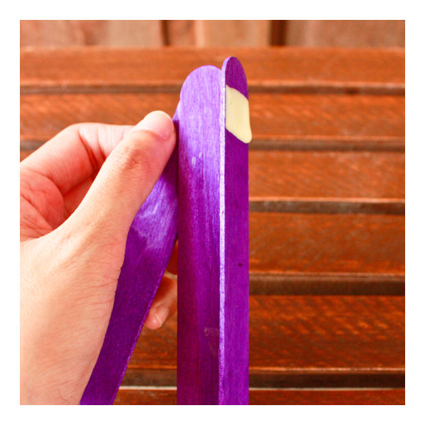 No próximo passo, aplique cola na lateral de um dos palitos.