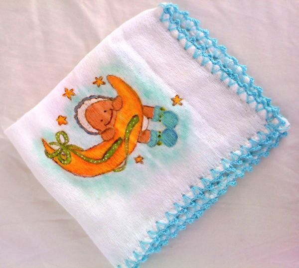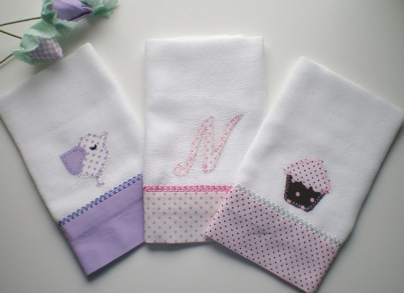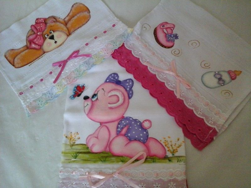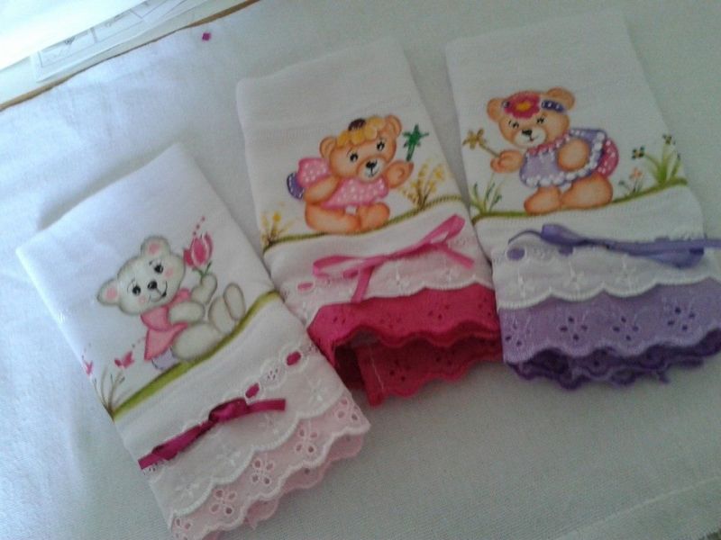 Se você sabe pintar, bordar (à mão ou à máquina) ou fixar apliques pode decorar a fralda com estes artesanatos, além de caprichar também na borda da fralda.