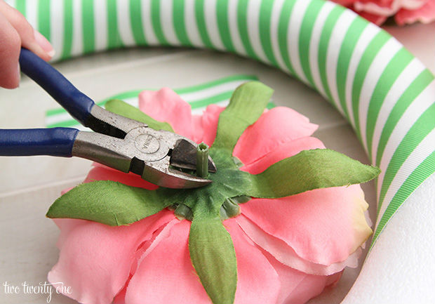 Arranque os cabos das peônias para poder anexá-las junto à guirlanda.