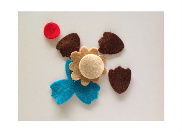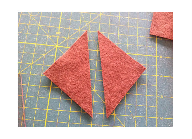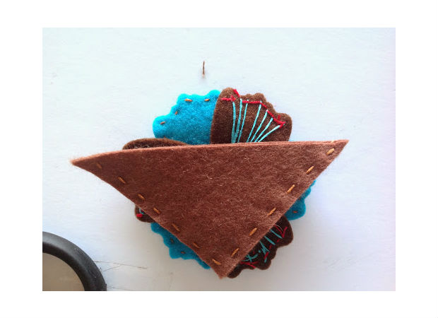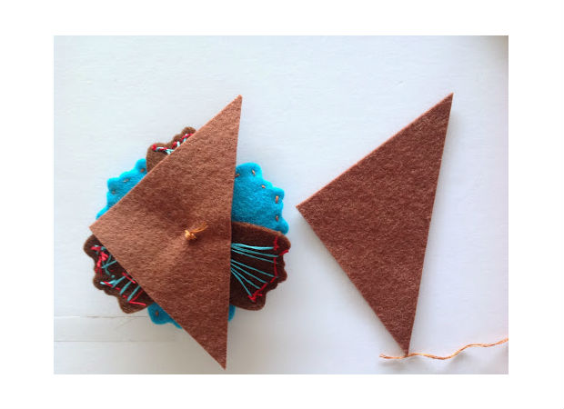 Logo, costure essa flor sobre o triângulo de feltro.