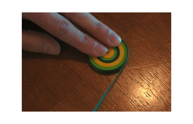 Comece enroscando e colando em um palito de dente um pedaço de fita colorida.