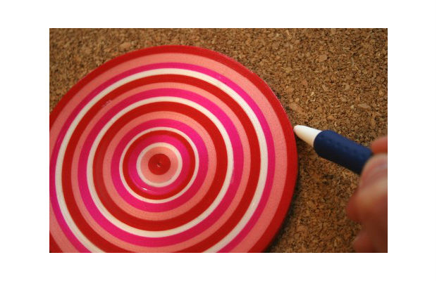 Cole a cortiça no porta copo, para que fique mais resistente.