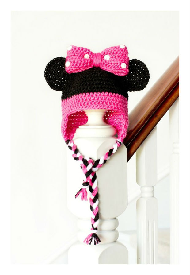Ainda sobre a Minnie…se sua filha adora a Minnie, mas também a cor rosa, que tal essa linda touca na cor rosa com esse lindo trançado para fechá-la!!
