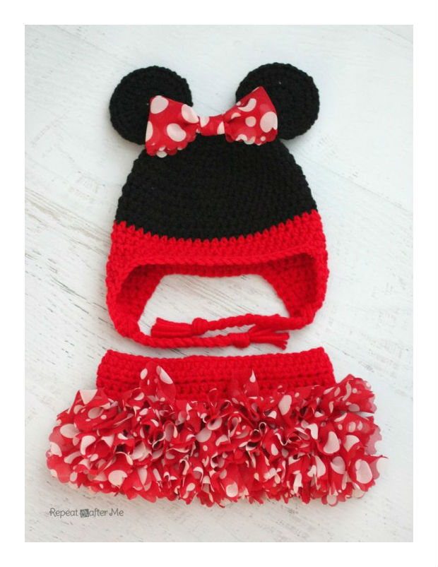 Voltando a Minnie…ao invés de uma calcinha, que tal uma sainha para acompanhar a touquinha e deixar a sua filha maravilhosa e quentinha!!