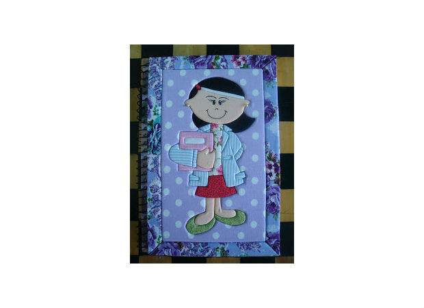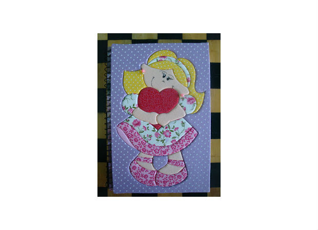 Para uma menina, que tal um caderno personalizado com a mesma técnica, usando uma bonequinha com as mesmas características de quem vai usá-lo.