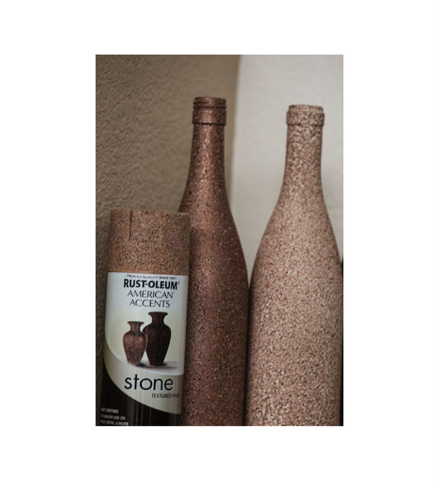 Você pode fazer uma textura de pedra na sua garrafa, pintando-a com tinta spray específica para esse trabalho.