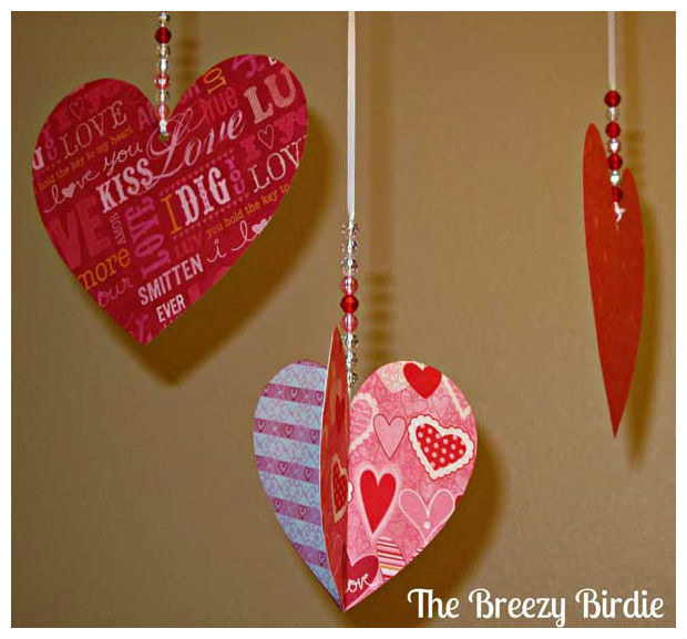 Também fica como dica esse lindo varal de corações, feito com papel cartão colorido.