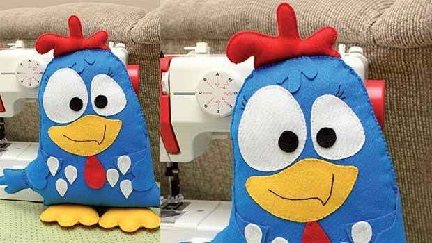 Acima você confere uma linda galinha pintadinha costurada com feltro colorido.