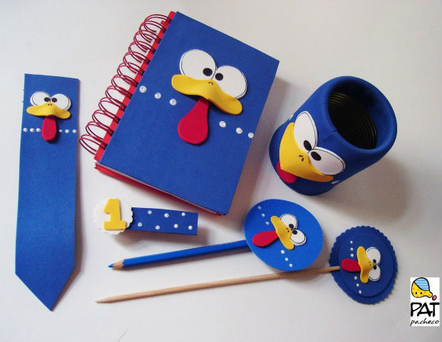 Veja que lindo kit escola você pode confeccionar, tanto para decorar o quarto do seu filho como também para oferecer de lembrancinha à festa de aniversário dele.