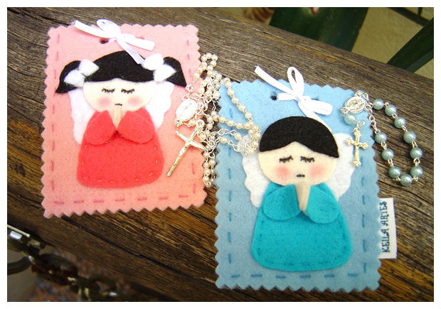 Acima uma ideia para lembrancinha de Batizado ou de Primeira Comunhão.