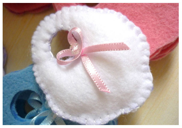 Veja que linda lembrancinha para chá de bebê ou para nascimento: babeiros de feltro.