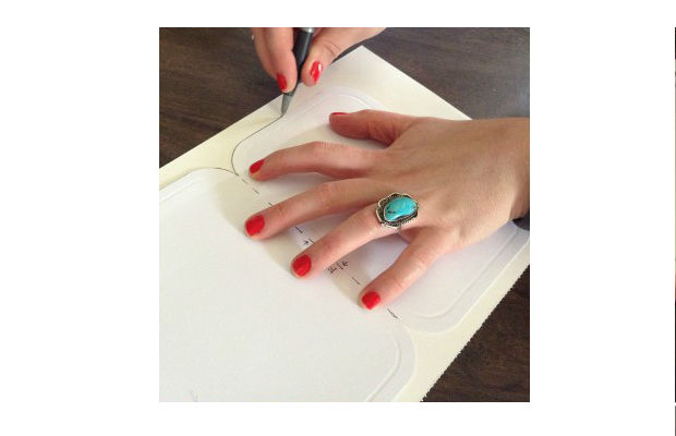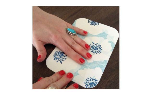 Agora, cole o tecido sobre o papelão.