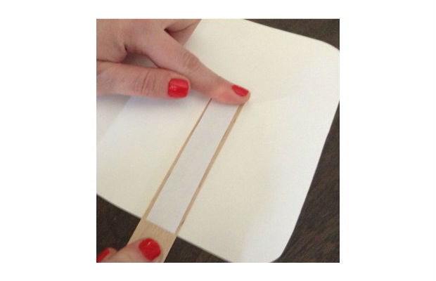 Dentro desse papelão, você deverá aplicar o palito de picolé, junte de uma fita dupla face para assegurar que o material ficará bem preso.