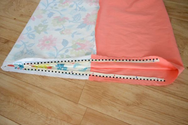 Em seguida, costure as partes laterais do zíper que estão abertas.