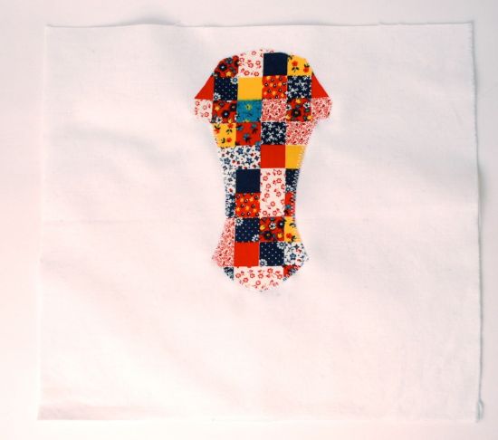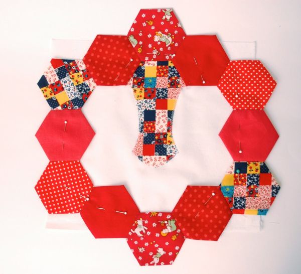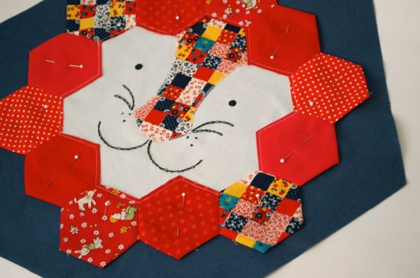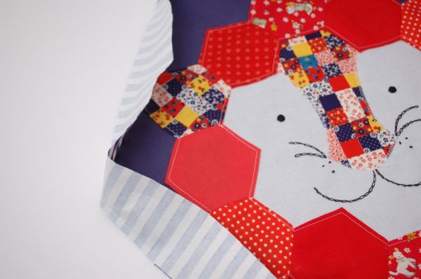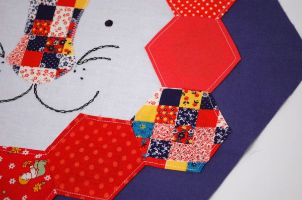 Agora, passe uma costura reta prendendo a carinha no hexágono.
