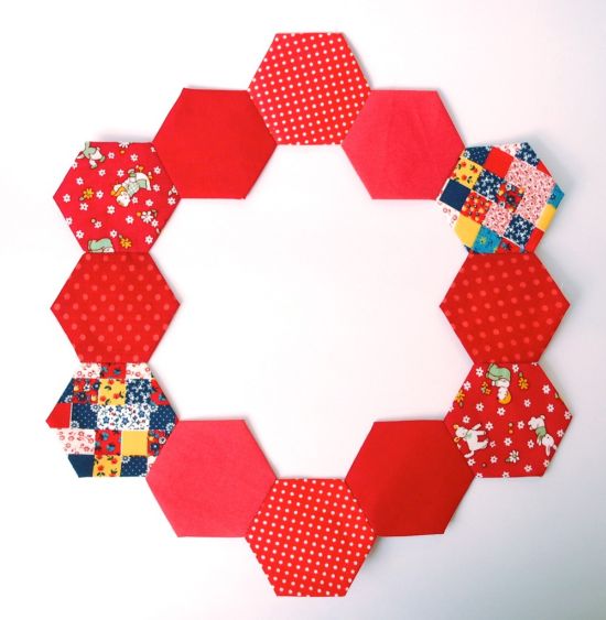 Logo após, posicione os doze hexágonos ao redor do detalhe de sua almofada.