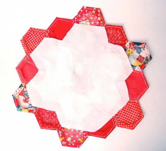 Em seguida, costure uma tira larga ao redor do hexágono.