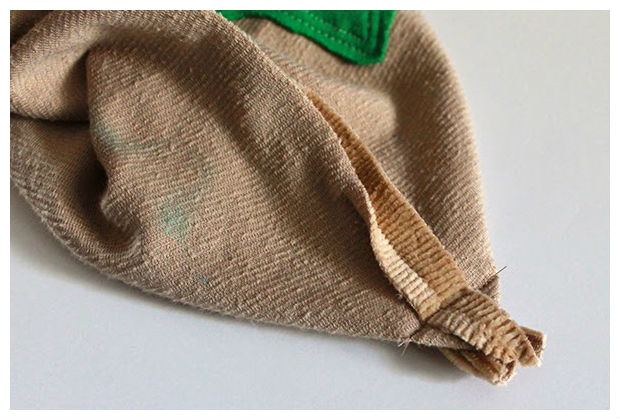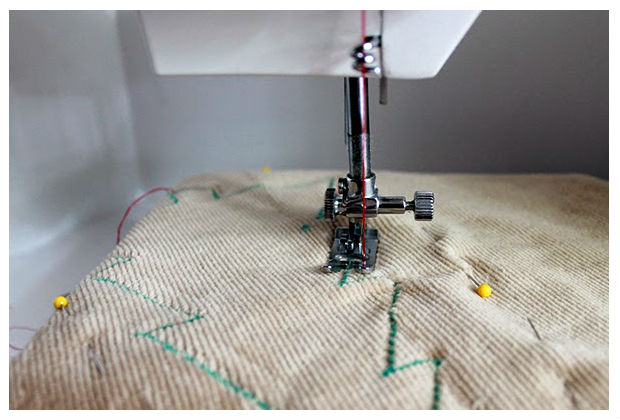 Em seguida, com uma linha verde, costure esse traçado.