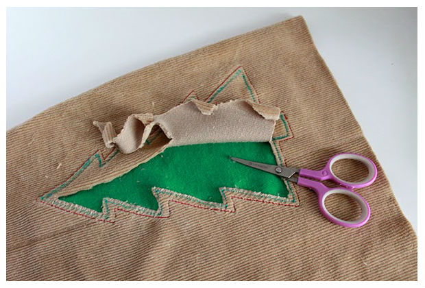 Recorte o tecido da almofada na parte de dentro da sua árvore, como na imagem acima, para deixa-la verdinha.