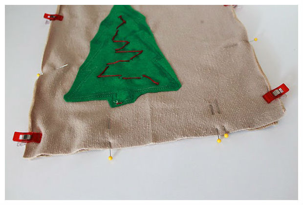 Costure o tecido da sua almofada juntamente com o tecido verde para a sua árvore.