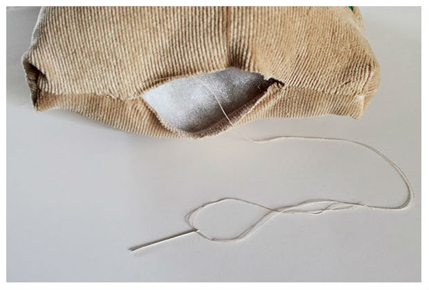 Aplique o enchimento de fibra e termine de costurar a sua almofada.