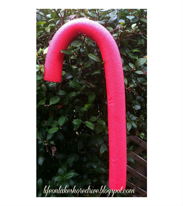 Recorte mais ou menos 15cm da sua espuma de piscina e curve-a na ponta, como na imagem acima, para fazer a bengala.