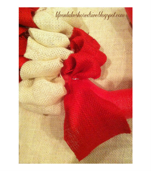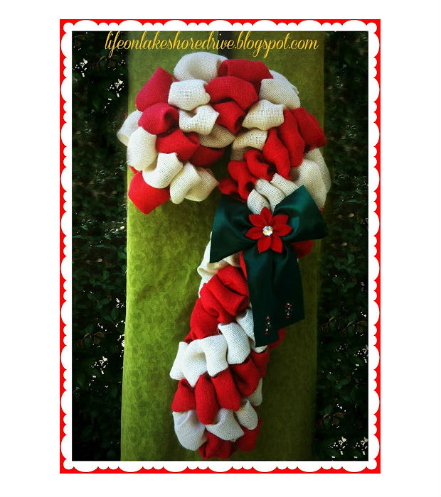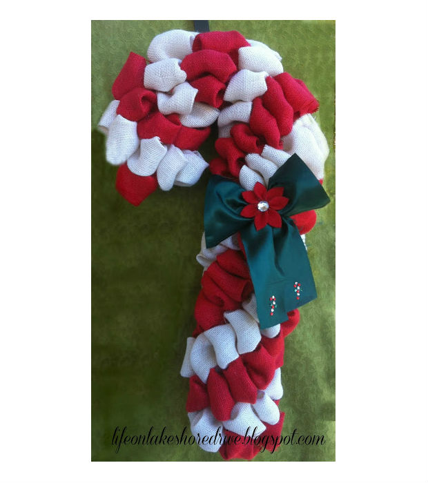 - Fonte: http://www.lifeonlakeshoredrive.com/2012/11/burlap-candy-cane-wreath.html