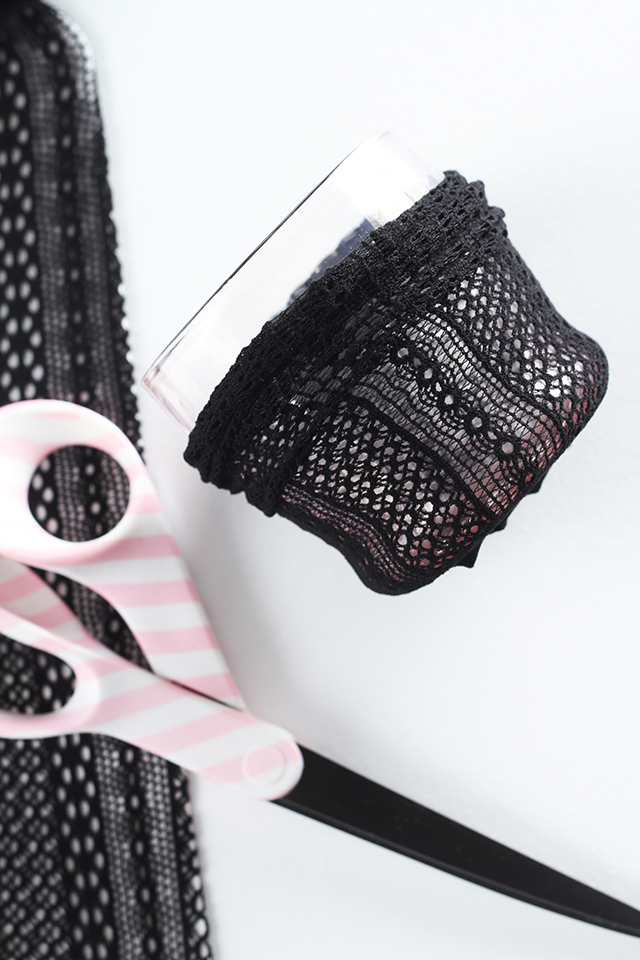 Meça a sua meia de acordo com o seu recipiente de vidro e corte o que você achar necessário.