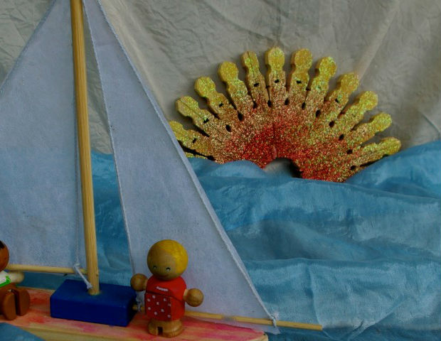 Para fazer um sol, por exemplo, cole um pregador no outro, como na imagem acima.