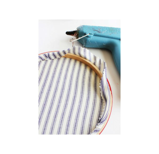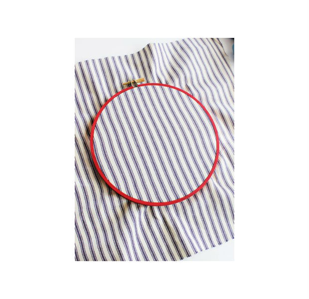Aplique o tecido no seu bastidor.