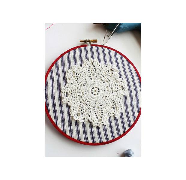 Cole um guardanapo de crochê no centro do bastidor.