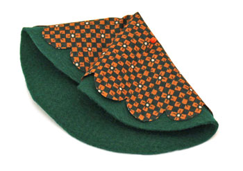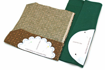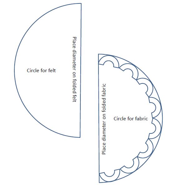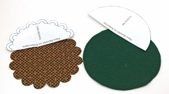 Dobre o tecido e o feltro e posicione os moldes. O feltro deve receber o círculo comum.