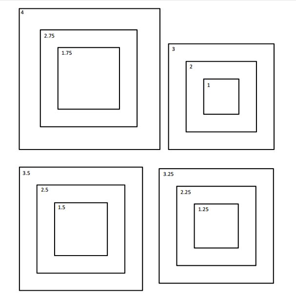 Mantenha o quadrado maior com papelão como base e comece a colar os quadrados menores, mas intercalando os cantos.