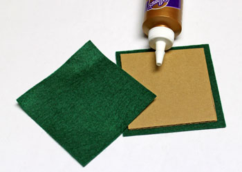 Cole um quadrado de papelão no meio de dois quadrados maiores. Deixe secar.