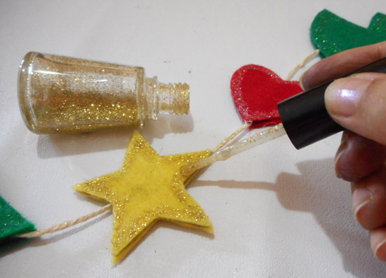 Cole outra pecinha igual na parte detrás e comece a decorar com esmalte ou cola e glitter.