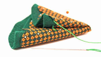 Faça um ponto por dentro na última dobra, para manter todas as partes no lugar. Leve a linha para a ponta.
