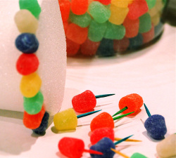 Agora espete os palitos de dente, sendo 1 para cada jujuba.