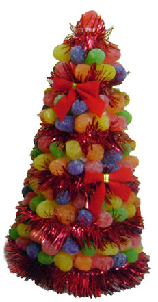 O mesmo você pode fazer com uma arvorezinha de formato diferente. Para isto, mude o molde da escultura: ao invés de usar um cone, use uma bolinha. Depois cubra o vasinho que você utilizou com uma areia bem fininha e própria para artesanato ou até mesmo, papel crepom (como foi utilizado neste artesanato da imagem).