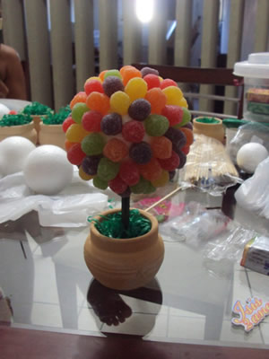Ficam tão lindas essas arvorezinhas. O melhor de tudo é que são comestíveis! As crianças vão adorar poder comer as jujubinhas quando for chegado o momento! Hora como decoração, hora como petiscos açucarados! Faça você também essa linda confecção super simples e atrativa.