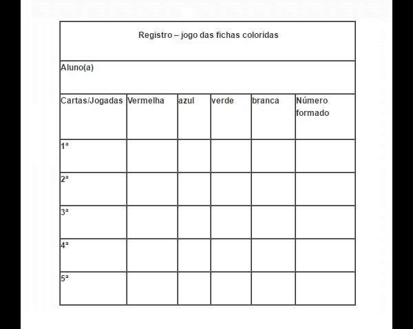 Jogo das fichas coloridas: