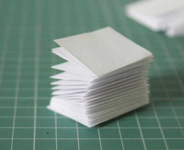 Primeiro, recorte as folhas do seu bloquinho, em tamanhos iguais, na quantidade que você desejar.