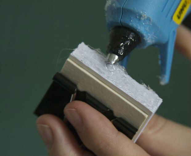 Aplique também um pouco de cola quente sobre a lateral do bloquinho.