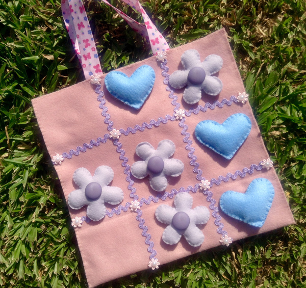 A bolsa de feltro infantil pode também ser funcional. Você pode fazer uma bolsinha para a sua menina, usando o feltro e também fazer detalhes de feltro, mas que viram um jogo da velha, para que além de linda, a sua menina leve consigo um brinquedinho, para se divertir com os amiguinhos.