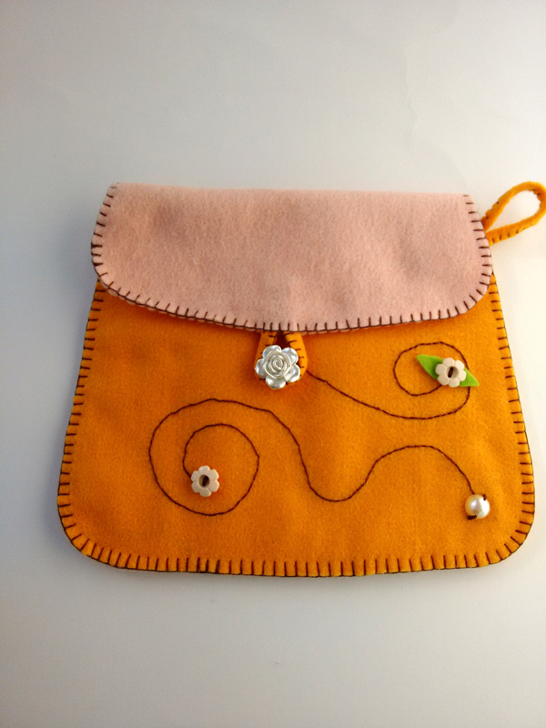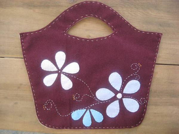 Caso você possua pedrarias ou uma pulseira ou colar com pedras e que você já esteja enjoada, desmonte-a e use as pedrinhas em sua bolsa de feltro, para deixá-la ainda mais bonita. Corte flores de feltro e costure-as sobre a parte da frente da sua bolsa, para que o visual seja ainda mais interessante.