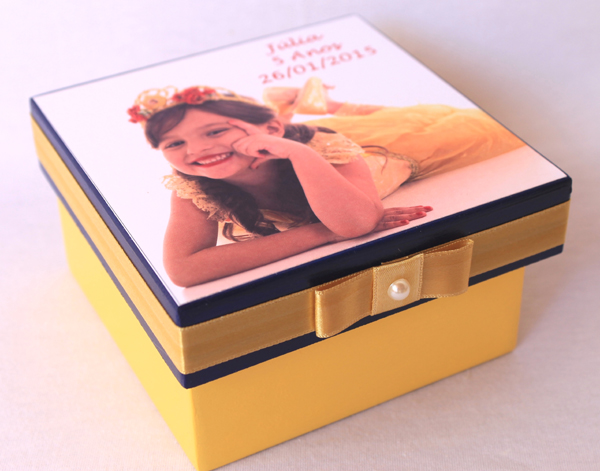 Até como lembrancinha você pode oferecer uma caixa de MDF decorada com fotos, e pode ser lembrancinha para festa de qualquer estilo ou qualquer ocasião.