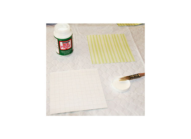 Aplique uma camada fina de cola Mod Podge na parte de trás do seu papel.